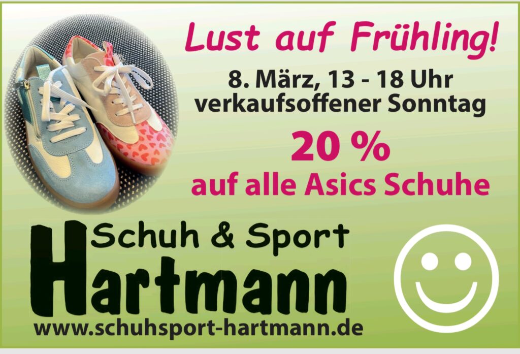 Der Frühling steht vor der Tür – und mit ihm die perfekte Gelegenheit, sich mit neuen, bequemen und stylischen Schuhen auszustatten. Bei Schuh & Sport Hartmann feiern wir den Saisonstart mit einem besonderen Einkaufstag.